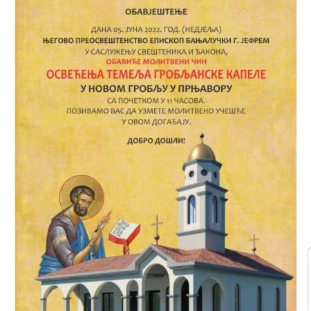 Најава: Освећење темеља гробљанске капеле у Прњавору