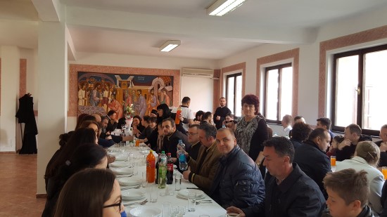 После Свете Архијерејске Литургије, Његово Преосвештенство, вјерни народ и хор тјелесно је окрепила трпеза љубави која је од стране домаћина била припремљена у просторијама парохијског дома.