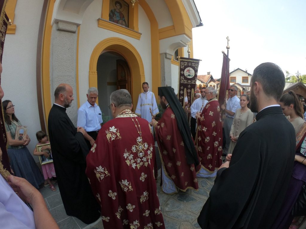 Свету Литургију предводио је протосинђел Платон, настојатељ манастира Ступље уз саслужење протојереја-ставрофора Радомира Малетића, пароха слатинског у Прњавору и протојереја Раде Савичића, пароха у пензији. Новообновљени храм није имао довољно мјеста да прими сабрани вјерни народ, од којих је већина приступила Светој Чаши и причестила се Тајнама Господњим. Пригодном бесједом обратио се протосинђел Платон, истакнувши како битност самог Празника, тако и битност живота по Јеванђељу.