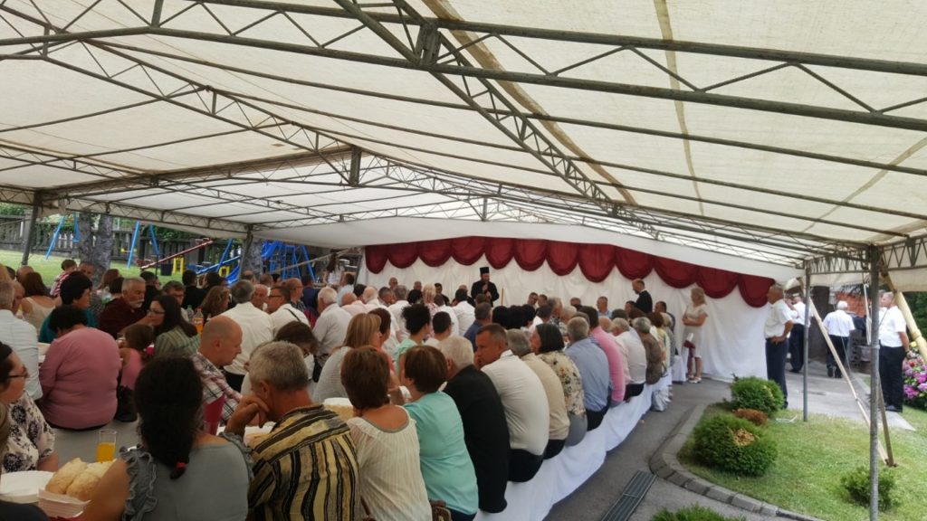 Након Свете Литургије, празнично славље настављено је за трпезом љубави која је уготовљена у порти. Све присутне поздравио је старјешина храма протојереј Душко Дринић, изразивши своје задовољство због великог одзива на овогодишњи Црквени сабор, као и због велике подршке вјерника око акције санације храма који ће ускоро бити и освећен.
