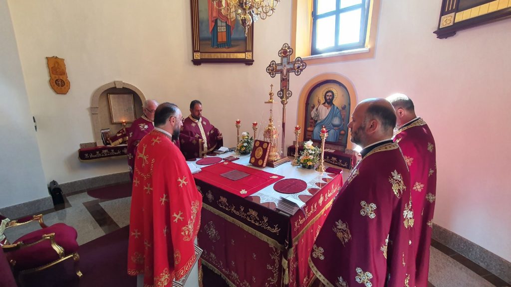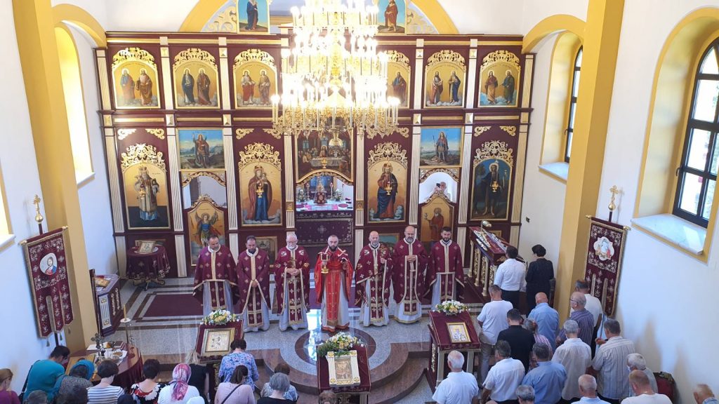 Празничну Литургију предводио је протосинђел Теофил, настојатељ манастира Осовица уз саслужење протојереја-ставрофора Душка Дринића, пароха прњаворског, протојереја Раде Савичића, пароха у пензији, протонамјесника Миће Гојковића, пароха палачковачког, протонамјесника Бранислава Алексића, пароха вијачанског, јереја Сретена Живковића, пароха великоиловског и јереја Горана Миладића, пароха гаљиповачког.