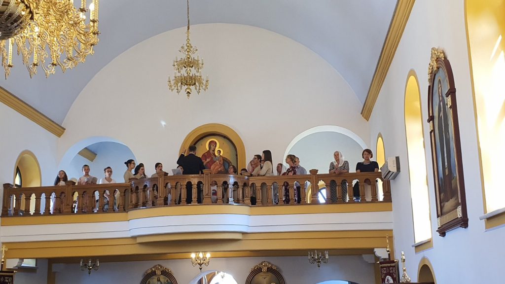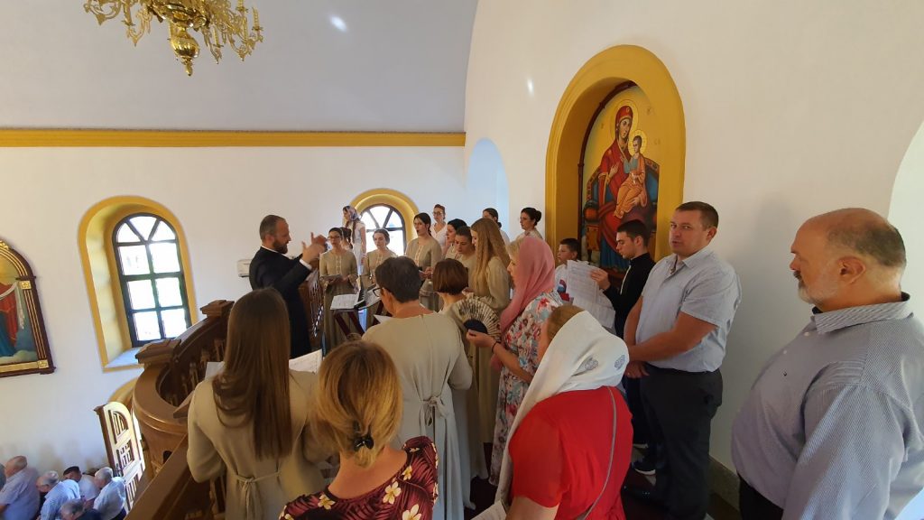Љепоти празничне Службе својим умилним пјевањем допринијели су чланови Српског црквеног пјевачког друштва Свети Георгије Прњавор, под руководством протонамјесника Радислава Нунића, пароха II прњаворског.