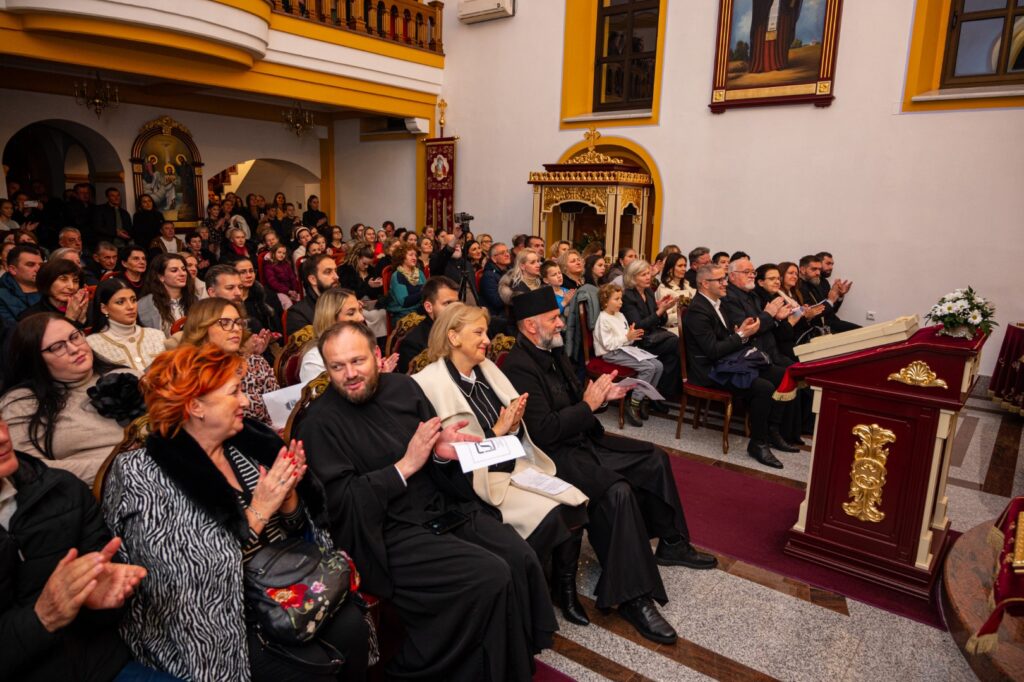 Концерт хорске музике одржан је у храму Светог Георгија. Сва сједећа мјеста и мјеста за стајање била су попуњена публиком која је бројала око 300 душа. Концерт је текао у веома лијепом духовном расположењу, изведене музичке нумере публика је награђивала громогласним аплаузима. На крају програма сви хорови су се сдружили на сцени и отпјевали композиције Тебе појем Стевана Ст. Мокрањца и многољетствије.