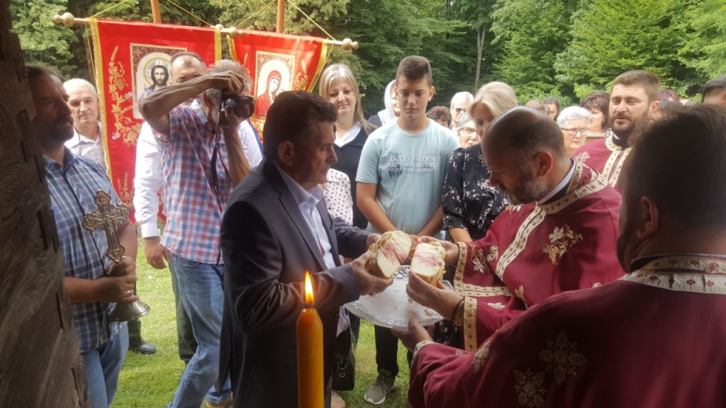 Послије Св. Лиругије и трократног опхода око храма освећен је славски колач и жито. Домаћини овогодишње храмовне славе били су Милутин и Милица Дринић из Палачковаца. Потом се протојереј Душко Дринић вјерном народу обратио бираним ријечима подсјећајући све нас на значај апостола Петра и Павла и на значај хришћанског поимања живота кроз сво вријеме од апостолских дана до данас.