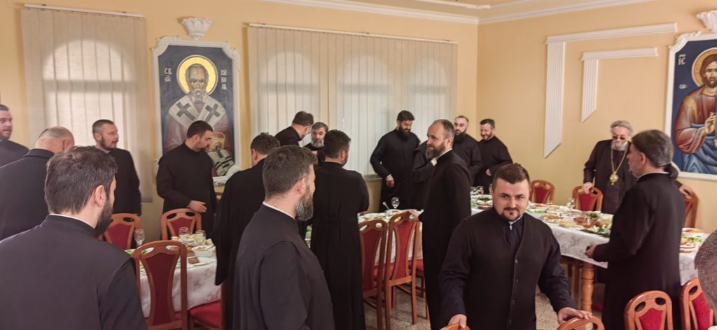 Након Свете Литургије која је служена у храму Светог Саве у прњаворском насељу Слатина и након исповијести свештенства два намјесништва, услиједио је састанак који је одржан у парохијском дому у Слатини. Заједнички ручак одржан је у сали за народ у парохијским просторијама храма Светог великом. Георгија у Прњавору.
