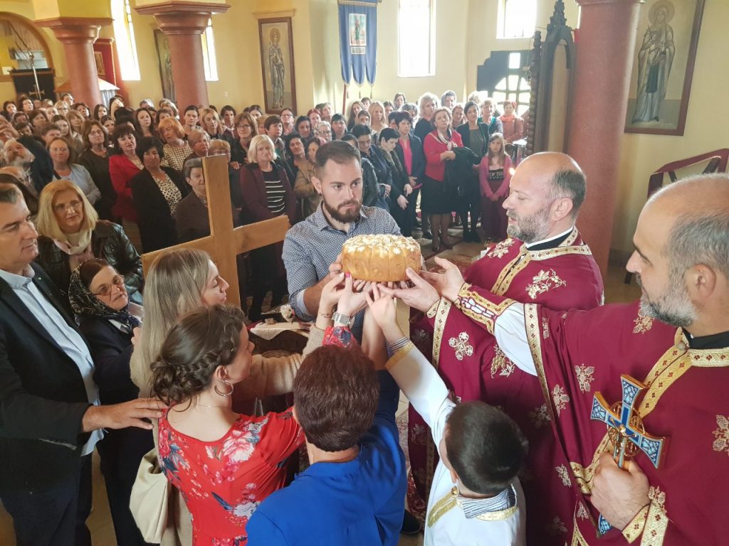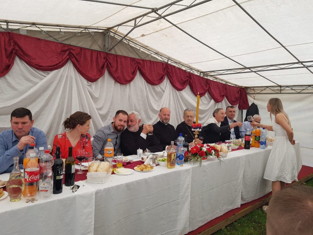 На славској трпези љубави срдачну добродошлицу гостима пожелио је мјесни парох протонамј. Мићо Гојковић, уједно честитајући својим парохијанима храмовну славу уз жеље да ово саборовање потраје на многа љета. По народним обичајима здравицом се обратио и кум Славе, господин Саша Милијаш, који је истакао да му је указана велика част што учествује у наведеној свечаности. Исти је напоменуо да су чланови његове породице били у његовој улози и прошле године, а планирају да кумују и сљедеће.