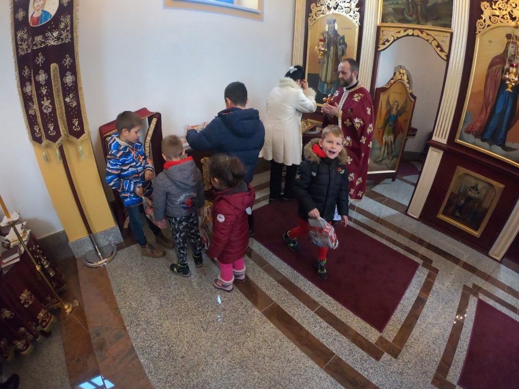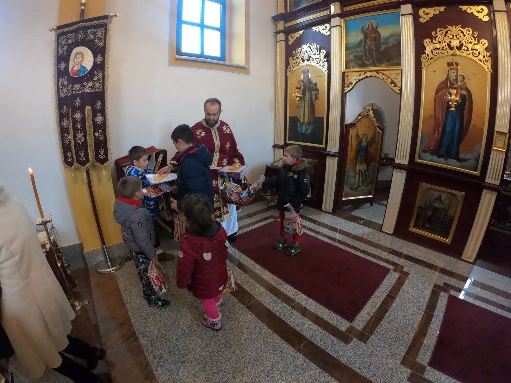 Након причешћивања и након обреда освећења славског жита и колача, најмлађим члановима прњаворске парохије традиционално су уручени никољдански поклони.
