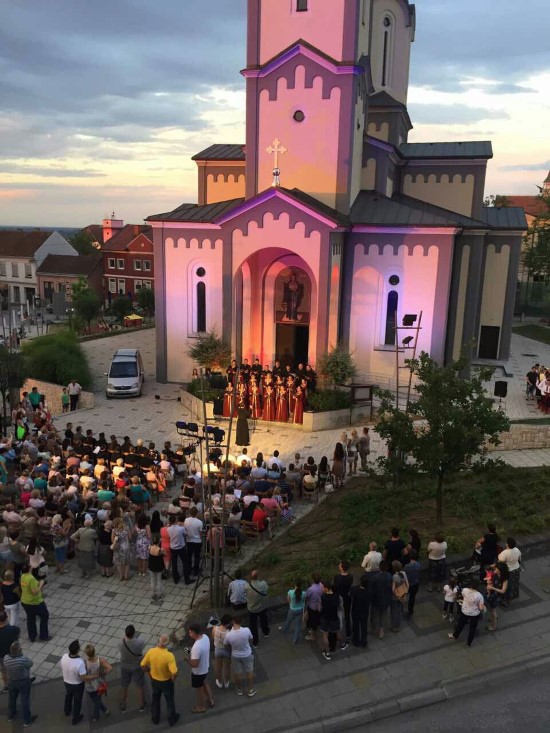 Заједно са домаћим културно – умјетничким друштвима из Дервенте, наш хор је имао прилику да ужива у изузетно дивном амбијенту који је нудила отворена сцена у порти храма. Ураво овај освештани простор и јесте достојно мјесто гдје се кроз духовни и културни садржај чини сјећање на велику личност Св. муч. кнеза Лазара и његових јунака.