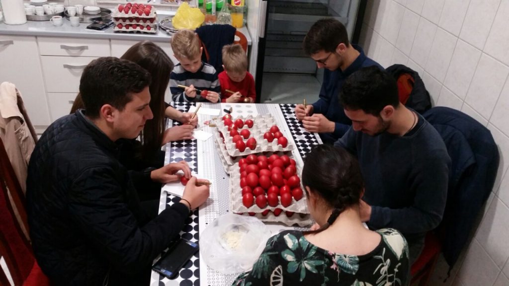 За празник Васкрсења Господа нашег Исуса Христа, на Светој Литургији освећују се васкршња јаја. При храму Св. Георгија традиционално се организују радионице за украшавање јаја, а иста се послије Васкршње Литургије дијеле вјерном народу као благослов. Постоји обичај да се послије причешћа на Празник прво oмрси са васкршњим јајетом које символизује васкрсење.