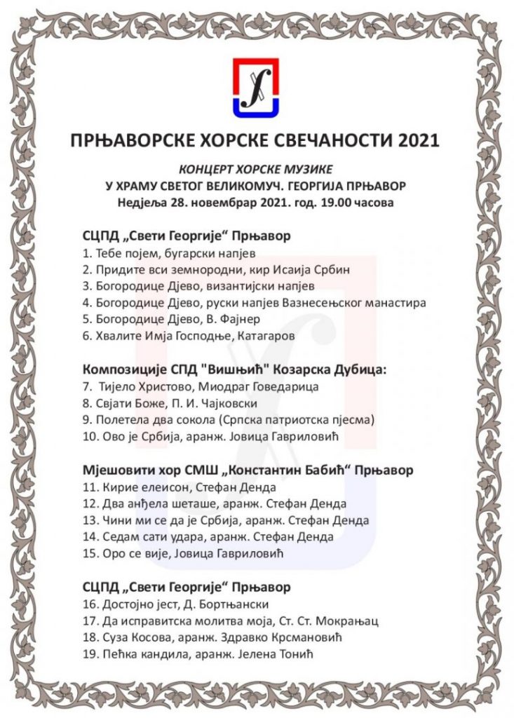 У недјељу 28. новемра 2021. године, у оквиру фестивала, одржан је коцерт у храму Светог великомуч. Георгија у Прњавору. Публика је имала прилику да ужива у интерпретацијама СПД “Вишњић” Козарска Дубица, под руководс